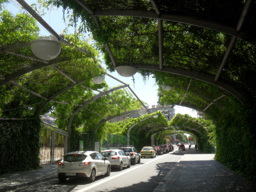 Zielone baldachimy nad ulicą w Barcelonie, https://commons.wikimedia.org/wiki/File:Planting_canopy_over_street_(18516634466).jpg